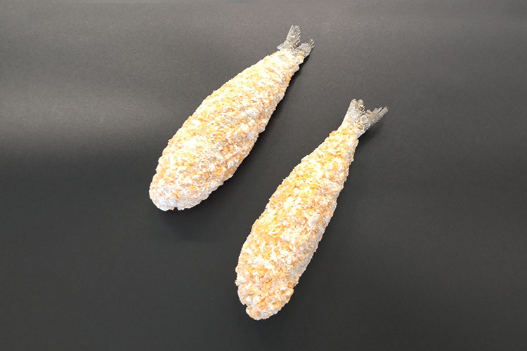 イワシに梅肉を塗りシソの葉を巻き衣で仕上げました。梅、シソの風味がイワシの旨みをひきたてます。