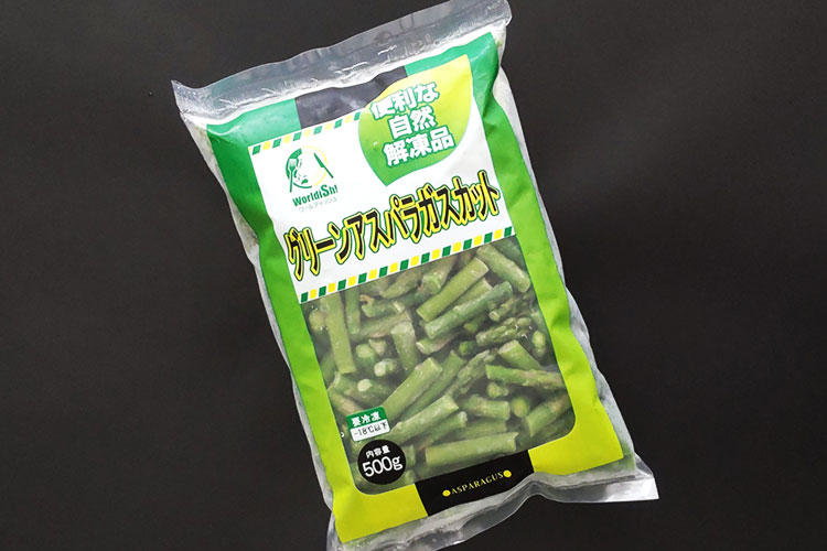 グリーンアスパラガスを食べやすいサイズにカットしました。