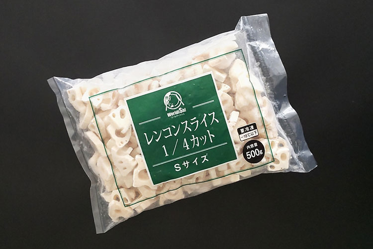 レンコン原料を適度な厚さにスライスし、1/4カットにして急速冷凍しました。シャキシャキした食感もご堪能ください。